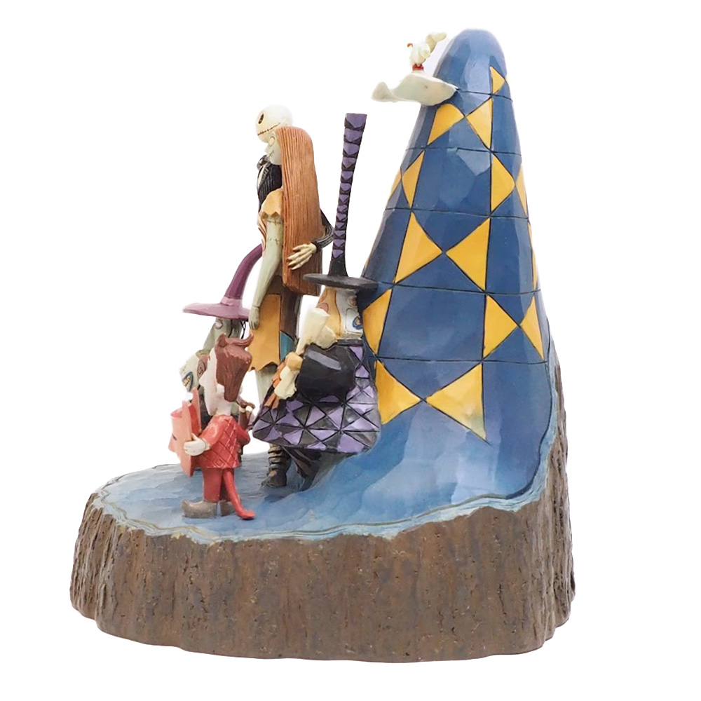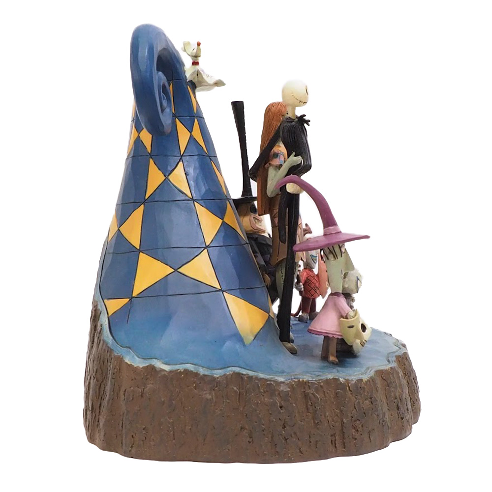 JIM SHOREが手掛けるDisney Traditionsから映画『ナイトメアー・ビフォア・クリスマス』のフィギュアが登場。ジャック、サリー、ハロウィンタウンの住人たちが、不気味な世界に入り込んだ客人を迎えるためスパイラルヒルに集まってきた様子を描いています。木彫りのような風合いが特徴的です。