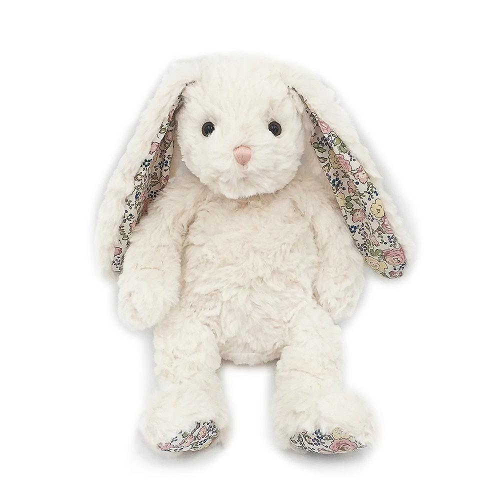 とても長い耳が特徴的なウサギのデイジー。春を感じさせるイエローカラーがアクセントの花柄のドレスにオリーブグリーンのオシャレなアクセサリーがポイントになっています。お子様の肌にも優しいリネン素材で作られており、耐久性も抜群です。イースターのギフトとしてもピッタリなぬいぐるみになっています。