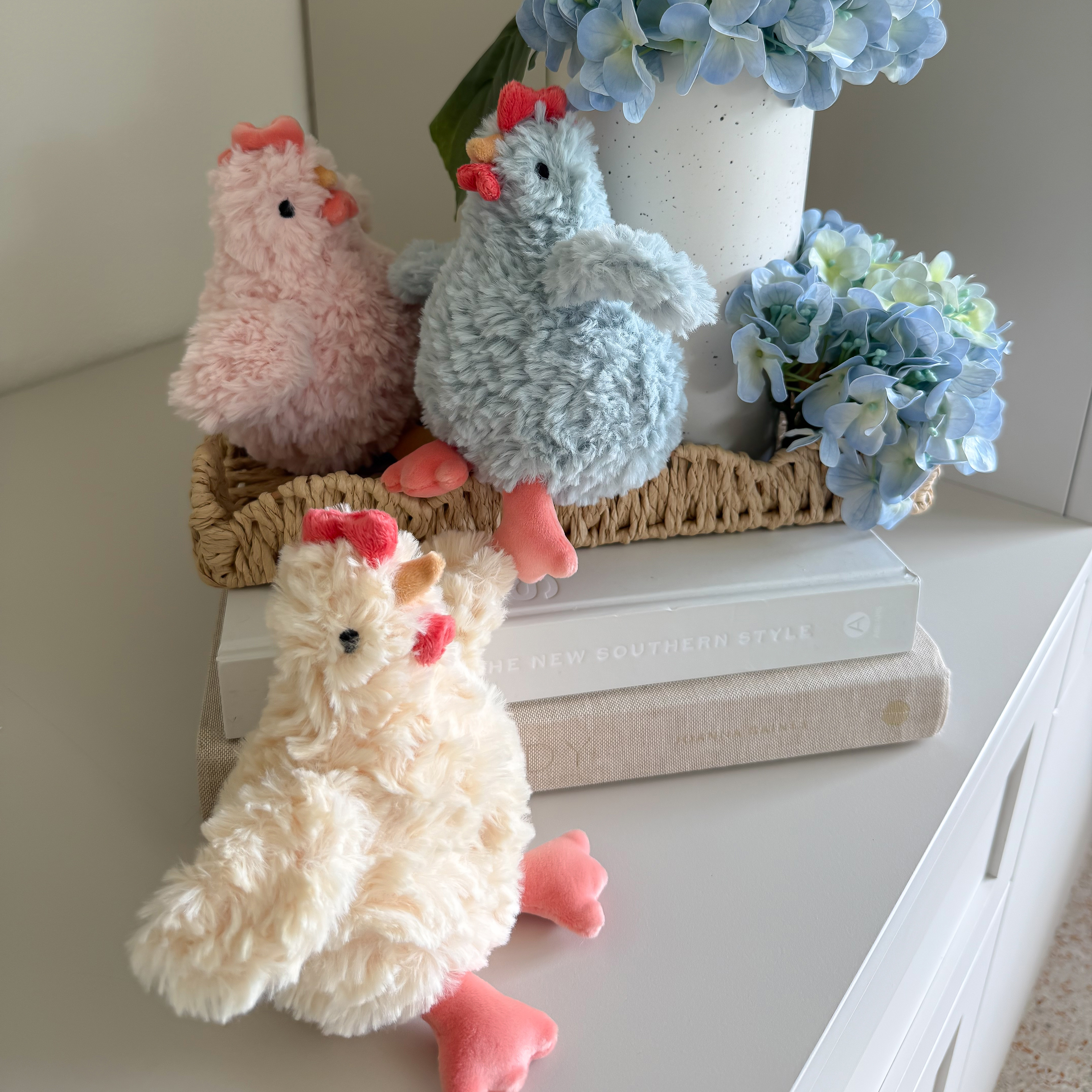 MON AMIから青色のにわとりのぬいぐるみが登場しました。