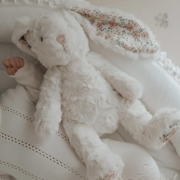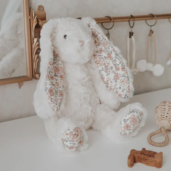 フランスからインスピレーションを受けてデザインされたぬいぐるみは、耳と足の裏にある洗練された花柄がポイントです。とっても柔らかくて肌触りも抜群です。イースターはもちろん、季節を問わずギフトとして喜ばれる定番人気のぬいぐるみです。